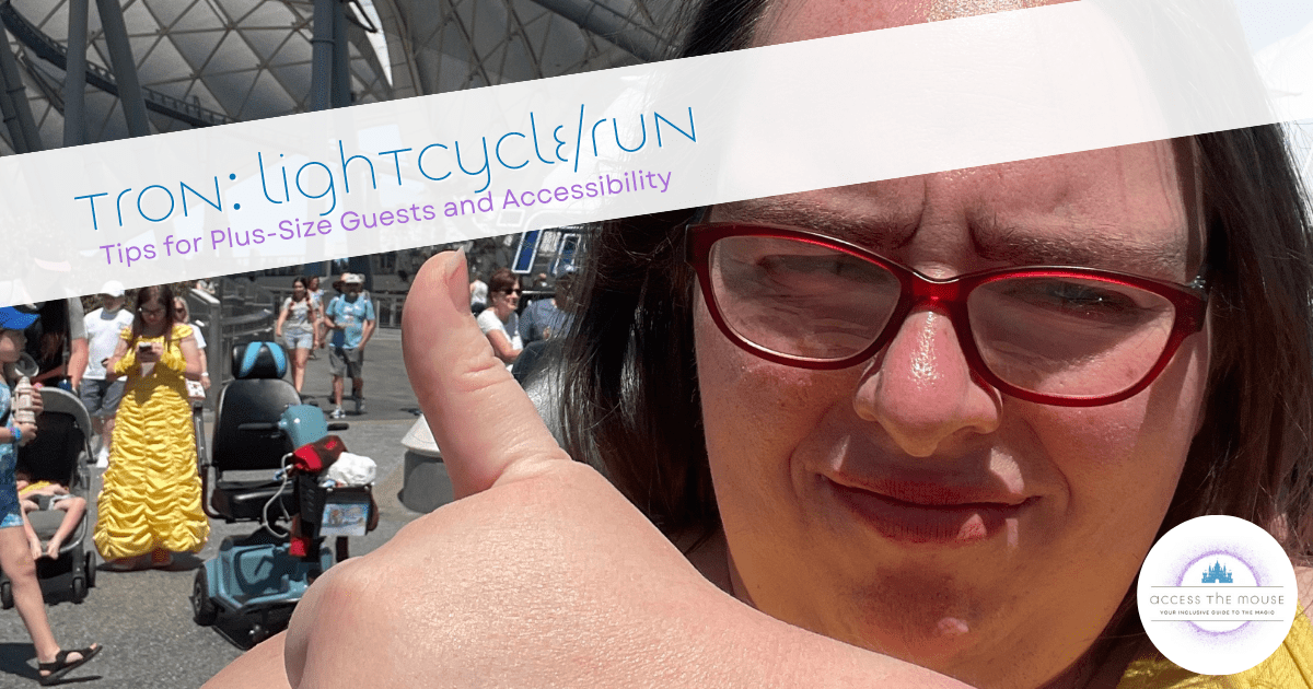 I’ll be the first to admit that when TRON: Lightcycle/Run was announced for Walt Disney World, I had some major concerns about how accessible this ride would be for plus-size guests. The new coaster was announced at the 2017 D23 Expo, just a few short months after Pandora: The World of Avatar opened at Disney’s Animal Kingdom. The limited information that we had at the time was showing ride vehicles similar to the ones on Flight of Passage, and this was concerning because Flight of Passage was notorious in the plus-size Disney community for being one of, if not the most, difficult rides to make it onto in Disney Parks. And Disney heard the concerns, equipping several of the trains with a more-traditional roller coaster seat in the back row in the last few months before moving into previews for Passholders and DVC members.