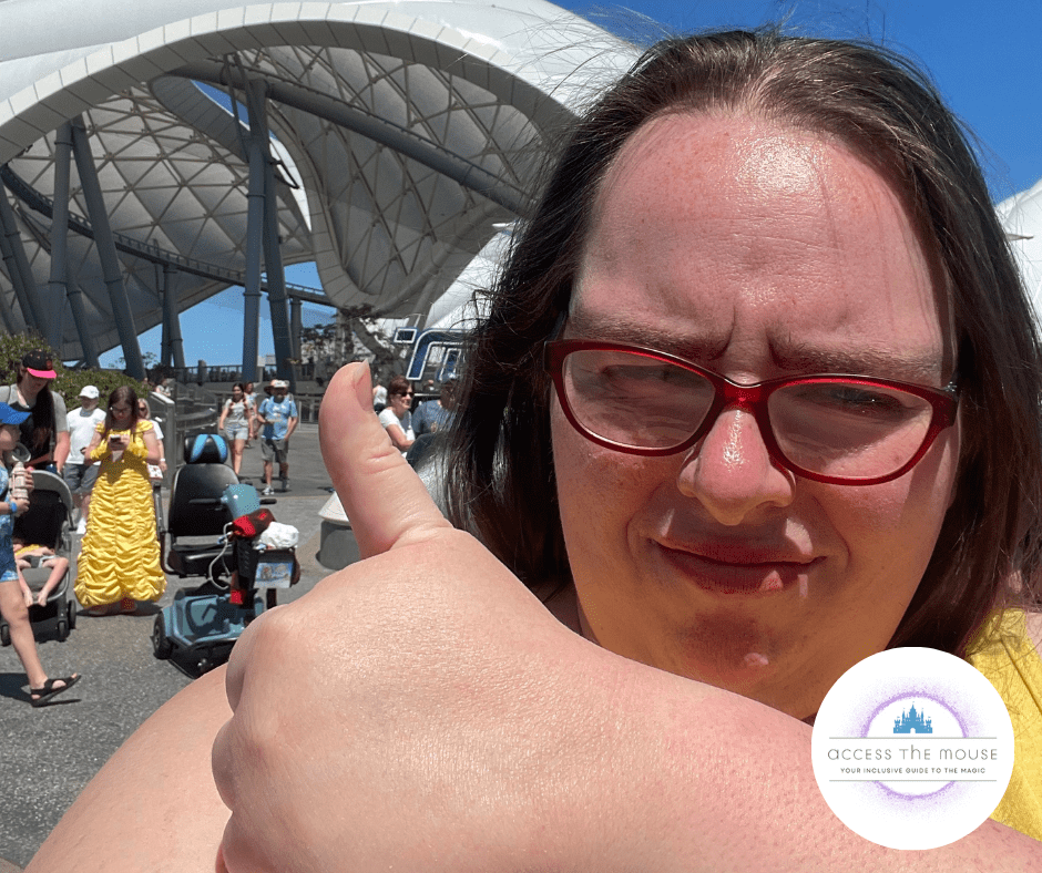 The ride itself was great: high speed, segments in the dark and outside under the canopy, and a fun Disney storyline where you enter the grid as part of Team Blue and are trying to beat Team Orange in a race. I had a blast. I’ve always been into roller coasters and high speed thrill rides, and between TRON: Lightcycle/Run and Guardians of the Galaxy: Cosmic Rewind, I was impressed. Disney Parks have stepped up their coaster game, and I’m glad they decided to make these rides accessible to guests with bigger bodies. I would like to see Disney considering guests with bigger bodies in the initial planning phases for new rides (the back seats are GREAT, but felt a little like an afterthough. Don’t get me wrong, I’m grateful they added them, but it should have been in their heads from the beginning, especially since the ride was announced amidst the issues with the Flight of Passage launch.) And on a related note, the courtesy wheelchairs need to have higher weight limits too. If your ECVs can hold 500 lbs, why do the wheelchairs you provide for guests to transfer into for the queue only hold up to 300 lbs? And why is the line not fully accessible to ECVs in the first place, since accessible queues have been a move the Walt Disney Company has been working toward for a long time now.