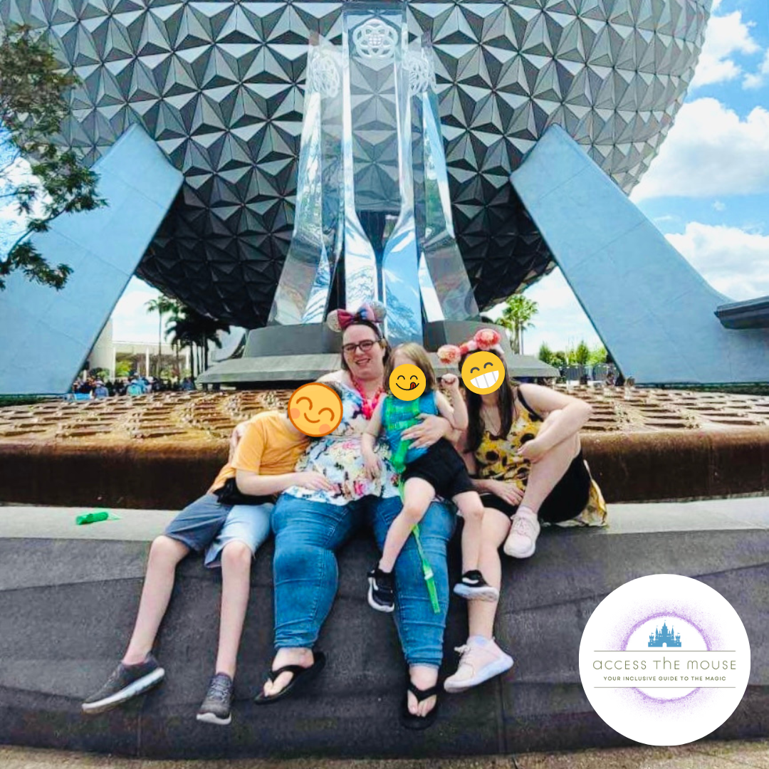 Anyone who knows me knows that EPCOT is, by far, my favorite park. Our priority this afternoon was to try to snag a Virtual Queue slot for Guardians of the Galaxy: Cosmic Rewind. We made it to the park’s bus drop-off right around 1:30 pm, and it took some time to make it over to the entrance. (I walk SLOW, and while most of our group is able to go through the detectors with no issues, it takes me some extra time because my epipens and our inhalers set off the machines every time.)