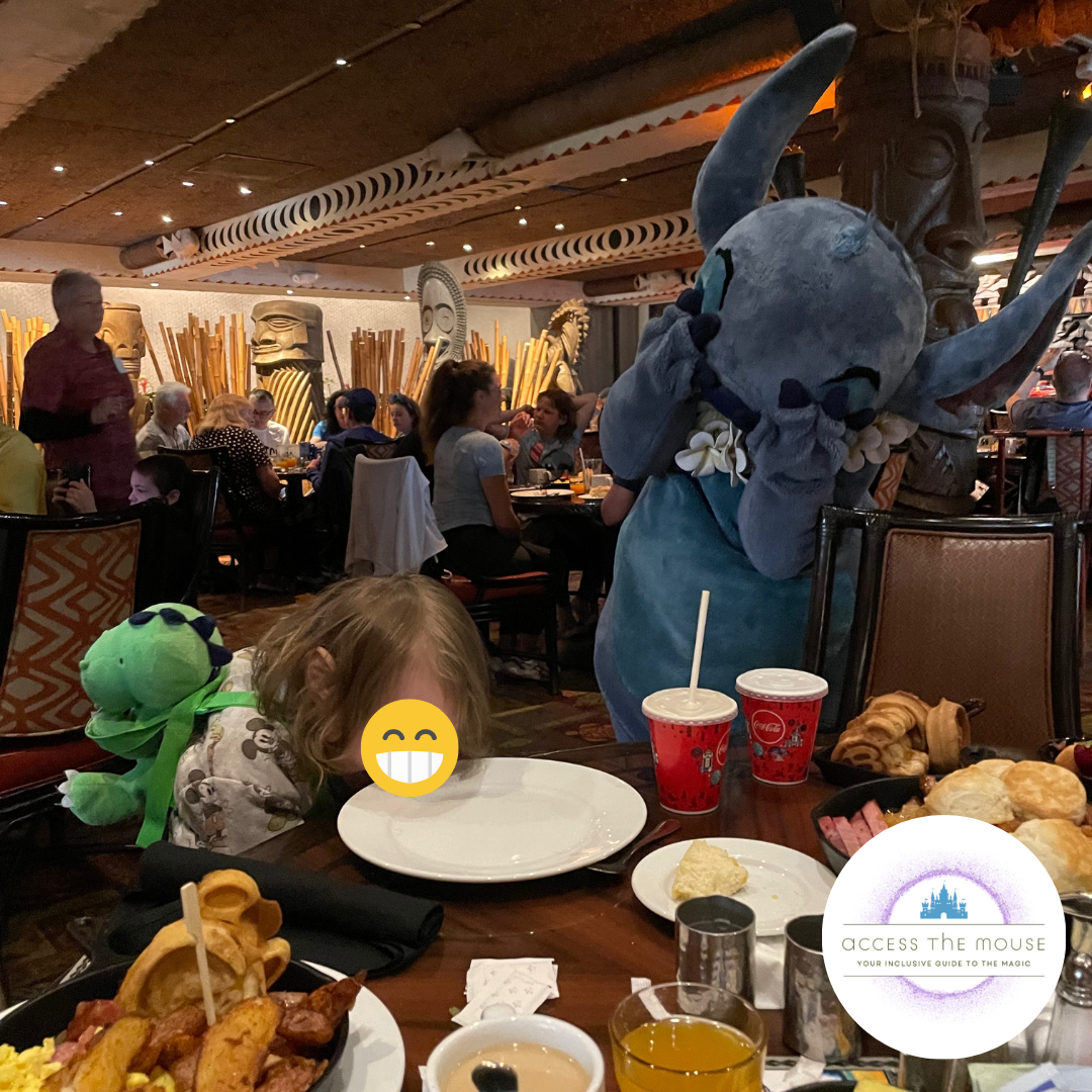 A full review of our breakfast at ‘Ohana can be found here. The breakfast here is amazing, and it’s not one to be missed if you or your family members like Lilo and Stitch. There’s a rumor going around that this may soon be the only place guests will be able to meet Stitch at Disney World. I don’t know if that’s true, but it’s definitely the only place to see Lilo, and the food is delicious.