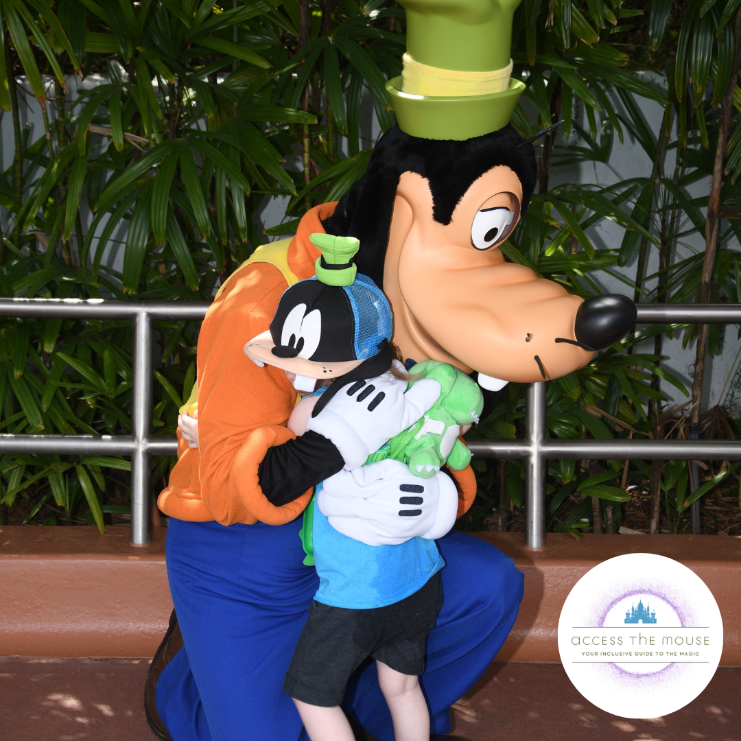 After we paid we found the line for the Goofy meet-and-greet. If you’re wondering where to look, once you enter the touchpoints at EPCOT, and you’re facing Spaceship Earth, Goofy and Minnie were meeting to your right along the wall. Many characters have had meet-and-greet opportunities here over the years. As a matter of fact, this was the very spot our oldest met Stitch for the first time eleven years ago. The character attendant with Goofy offered to let us borrow their sharpie for Goofy to sign the hat we had just bought. Our toddler absolutely loved this, and kept talking for the rest of the trip about his “Goofy hat that Goofy signed” for him.