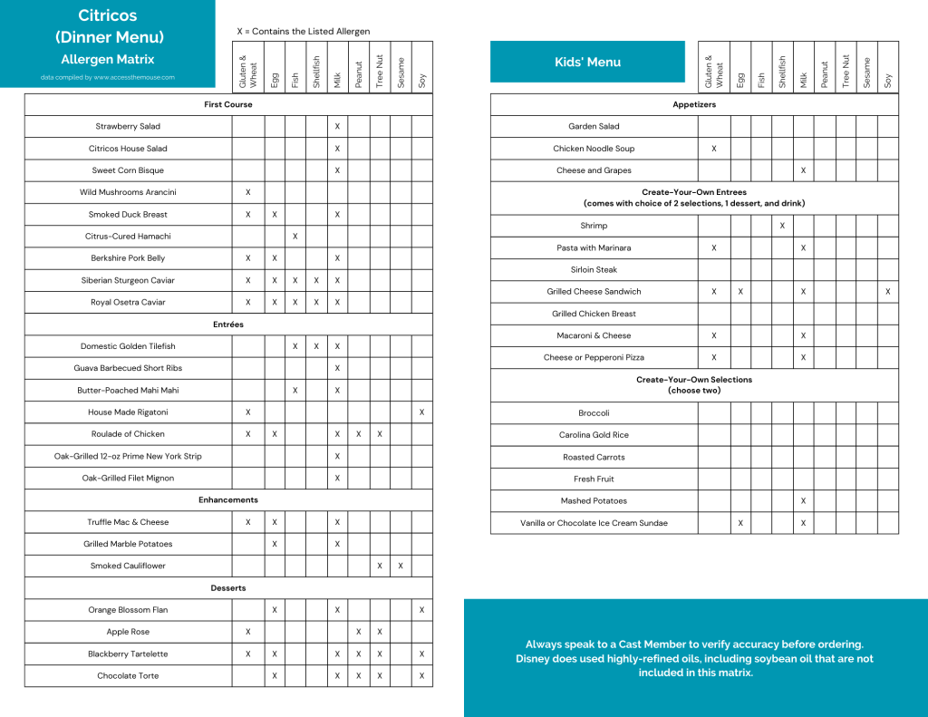 If you’re just here for the allergen matrix, you can scroll to the bottom and skip the rest! I make every effort to keep this up-to-date, but always verify the safety of what you’re hoping to eat with the chef or allergy coordinator.