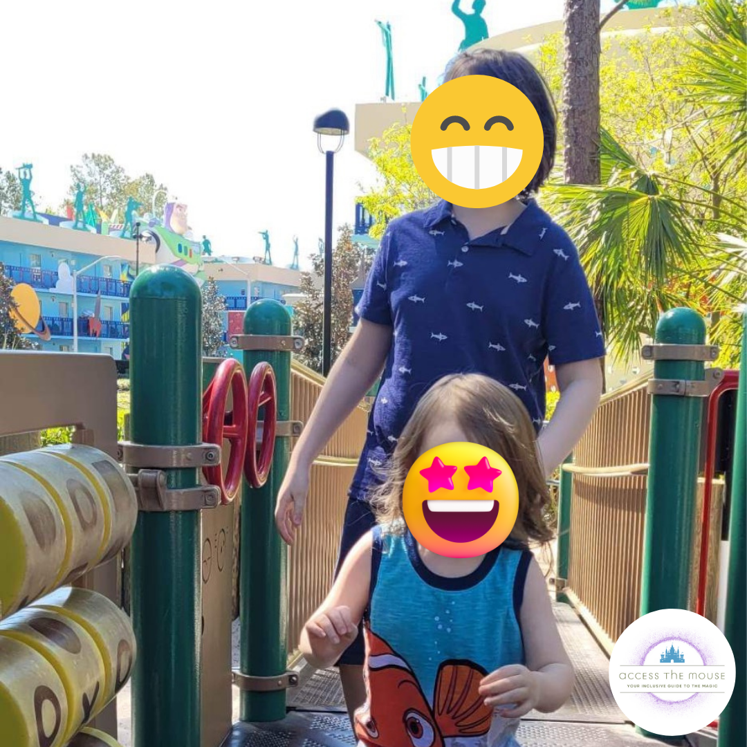 Our third “Disney Day” was our return trip to EPCOT. Originally we were supposed to have a breakfast at Topolino’s Terrace (over at Disney’s Riviera Resort) but the events of the night before led to us completely scrapping that plan. (Still working on that post). Instead, we decided to sleep in some. When we woke up, I chugged one of the OWYN protein shakes I packed for the trip as my breakfast, and we set the kids up with pop tarts and shelf-stable milk as we all rotated through our morning routine. My wife took the younger kids back to the playground for a big while I finished up, and by noon, we were on the bus heading over to EPCOT, listening to the toddler sing “The Wheels on the Bus” and “Twinkle Twinkle Little Star.”
