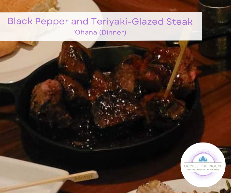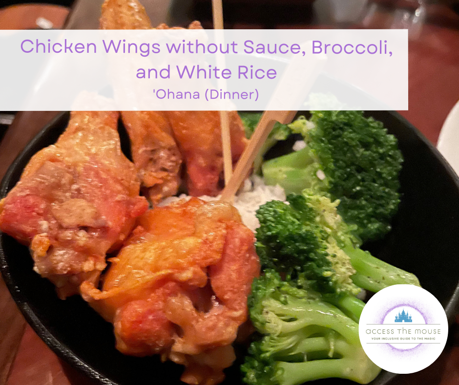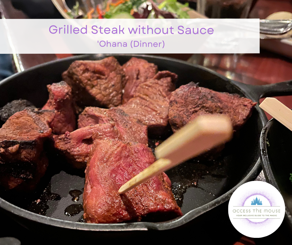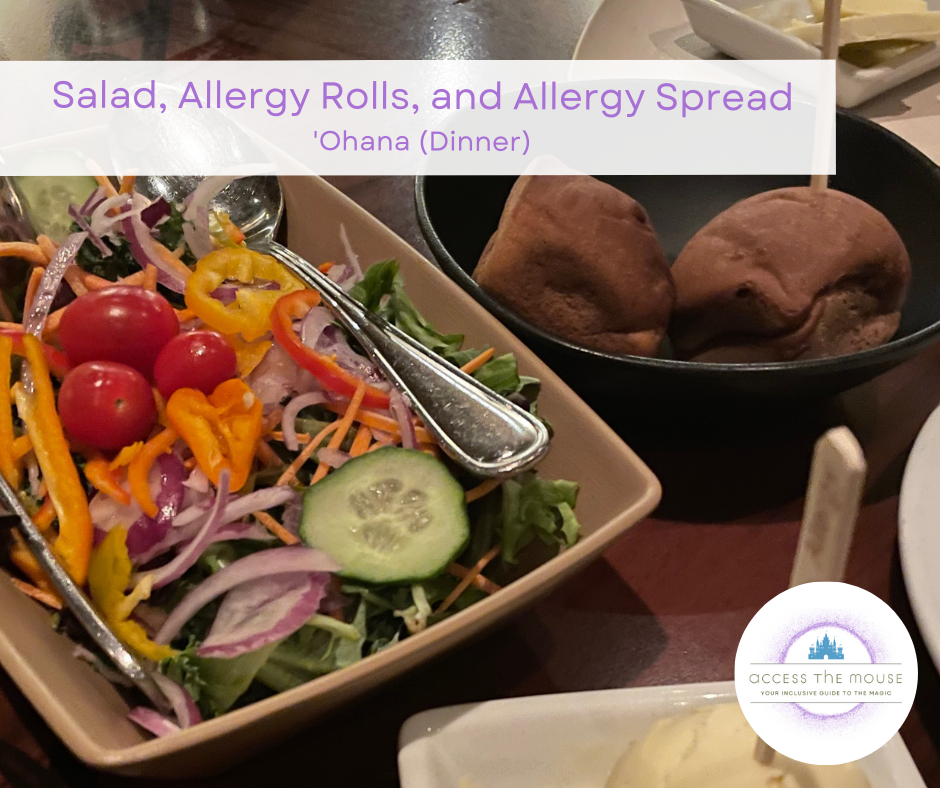 My first visit to ‘Ohana for dinner was in 2017. At that time, my wife and I were on a kid-free trip for our anniversary, and we had an early reservation one afternoon before we finished the night our at the parks. At that time, my wife was eating gluten-free but my food allergies were still undiagnosed. (I definitely had symptoms, but we hadn’t nailed down the trigger foods at that point so I was still eating everything.) It was a completely different experience than the Best Friends Breakfast featuring Lilo & Stitch, which we also love. It was very relaxing, with lovely ukelele music and a view of the castle across Bay Lake. We loved it so much that we decided that day that we were going to have to bring the kids next time.