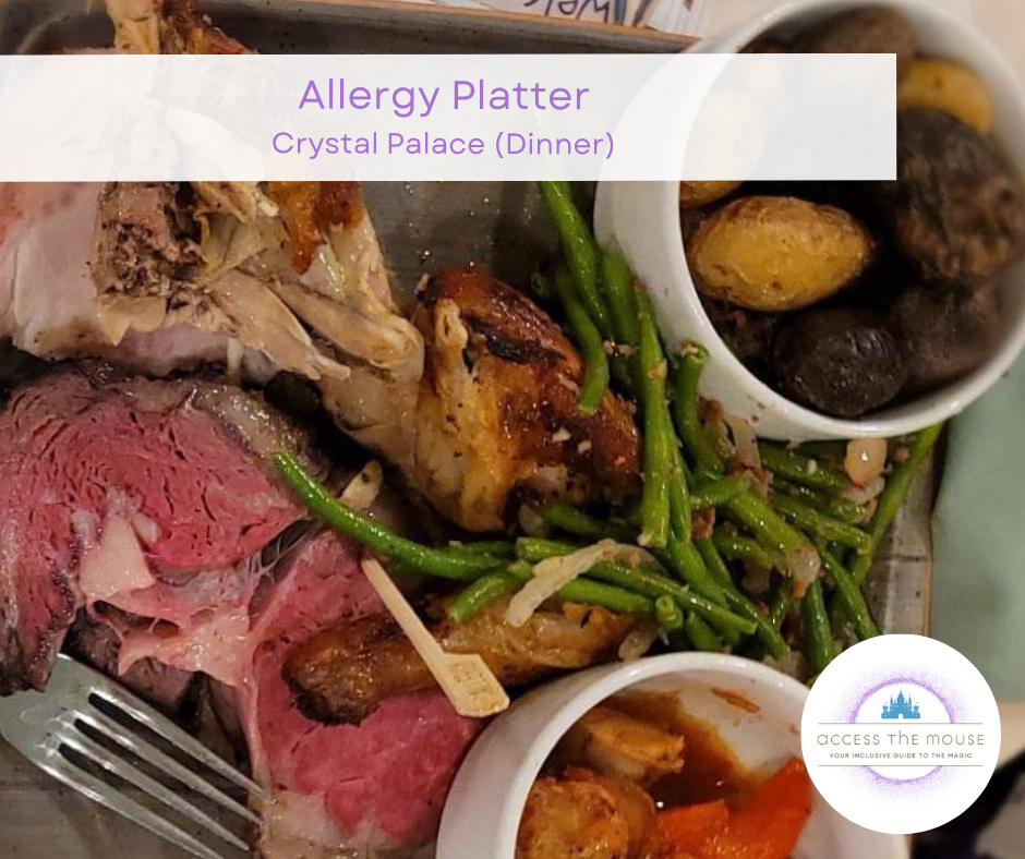 If you saw my last few posts about Our Second Magic Kingdom Day (including the side trip to First Aid with the oldest kid, and the trip back to the hotel that night) you know that was a pretty crazy day for us, with plenty of good mixed with some not-so-fun. Once we made it out of First Aid, we went straight over to Crystal Palace for our dinner reservation. We arrived right as Enchantment was beginning, and were seated near the door. Since it was getting late and the fireworks had started, the restaurant was pretty empty, and that worked out well for us.
