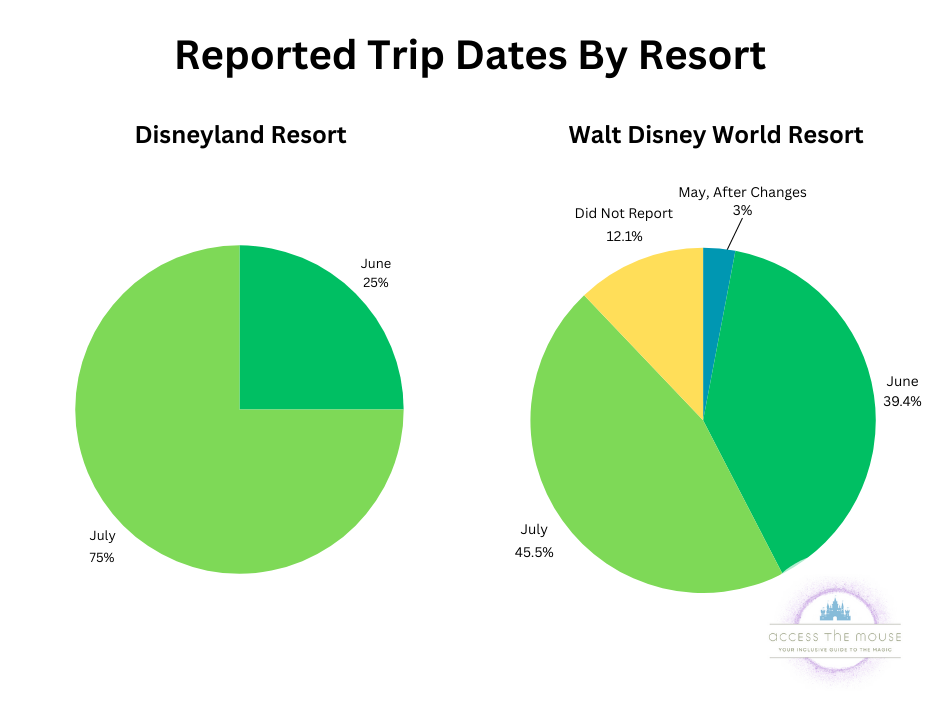 (Note on limitations: This is a very small data set compared to the number of guests who visit the parks and apply for accommodations each day. The more responses, the clearer the picture becomes. There are some very interesting trends, especially when comparing East Coast vs. West Coast, however East Coast has double the number of responses. This is also all self-reported anonymous information, and with that I can’t guarantee accuracy of any statements made by any survey respondents. This is also not a survey that considers DAS approval rates, as it only applies to disabled park visitors who either were 1) denied DAS or 2) did not apply for DAS after hearing about the denials and who visited AFTER the changes began at their respective parks. DAS-Related information shared should not be considered a “full picture” of what’s going on with the DAS calls, because it does have a bias – we have no information about who was approved. This was done intentionally, because I’ve always held the view on my blog that sharing information to “help you get approved” for DAS contributes to the problems guests are facing with the restrictions. None of the information shared below this paragraph is indicative of any opinions I personally hold, and none of this page is related to any experiences I personally have had with the parks or the company overall, with two exceptions. The only exceptions are things I’ve shared italicized in parentheses with the preface of “Speculatory Note,” which are predictions or speculation around trends I believe we may see in the future, or “Personal Note,” which give my thoughts on data or discrepancies shared in that section of the post.)